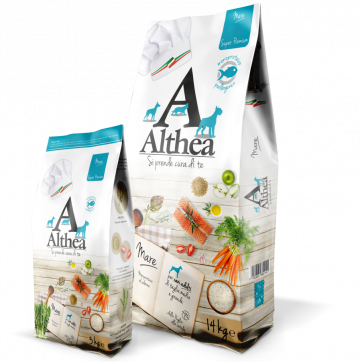 Althea Mare je kompletné suché krmivo, formulované pre stredné / veľké dospelé psy. Althea prináša kvalitu do misky vášho psa. Althea je kompletné, vyvážené, pravé a vysoko výživné krmivo: bielkoviny, sacharidy, tuky, vitamíny, vláknina, minerály a prírodné prvky na zabezpečenie pravidelnej fyzickej a metabolickej aktivity vášho dospelého psa.