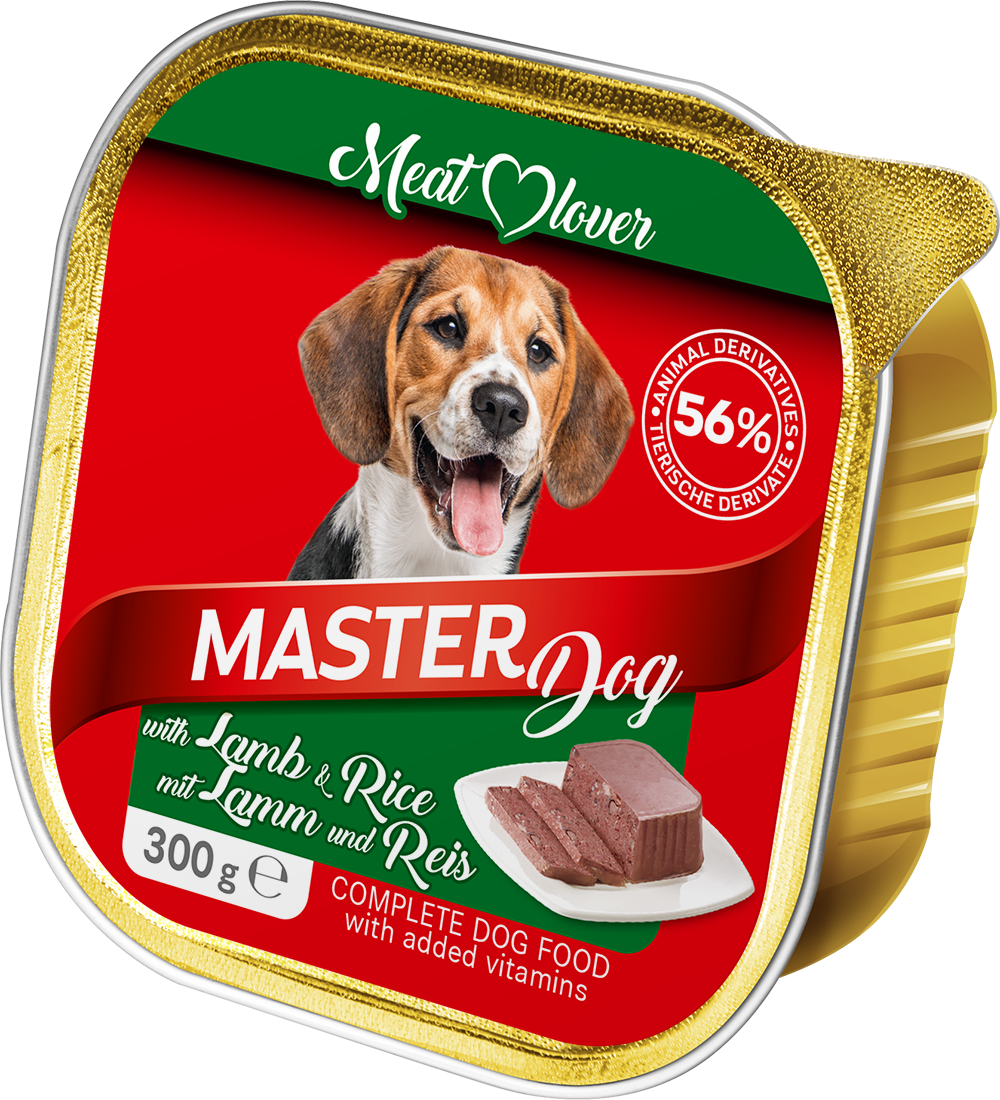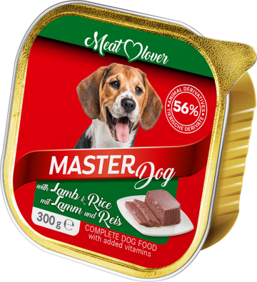 Zloženie: 56% mäsa a živočíšnych derivátov (min 4% jahňacieho mäsa), obilniny (4% ryže).