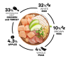 Zloženie: Dehydrované kuracie a morčacie mäso* (33 %), biela ryža* (32 %), kurací a morčací tuk*, hnedá ryža* (10 %), celý hrach* (4 %), dehydrovaná repná dužina* (4 %), hydrolyzované kuracie mäso* (3 %), minerály, pivovarské kvasnice*, dehydrovaná jablková dužina* (0,5 %) (ekvivalent 4,3 % čerstvých jabĺk), postbiotiká* (inaktivované produkty fermentácie pivovarských kvasníc) (0,20 %), chondroitín (900 mg/kg), glukozamín (813 mg/kg), juka schidigera*. *Prírodné zložky.
